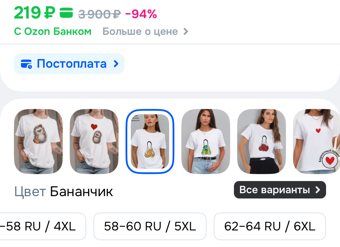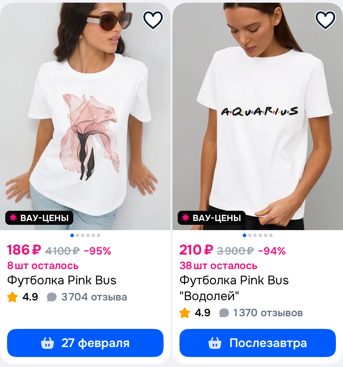Попалась акция на футболки. Цена начинаются от 186₽, только нужно поставить сортировку по цене.