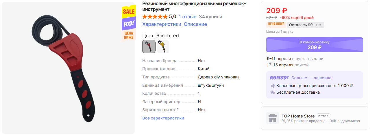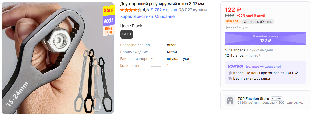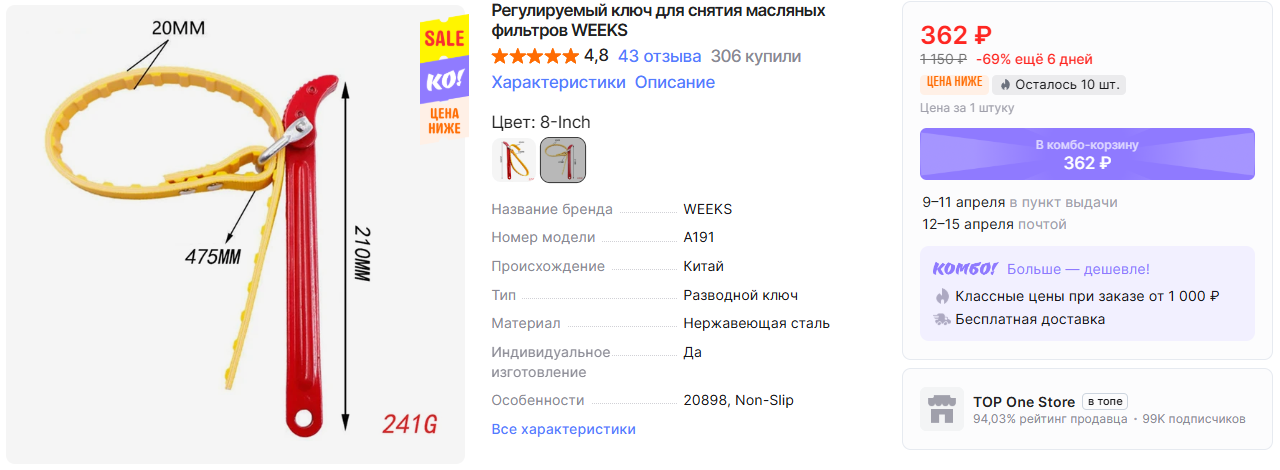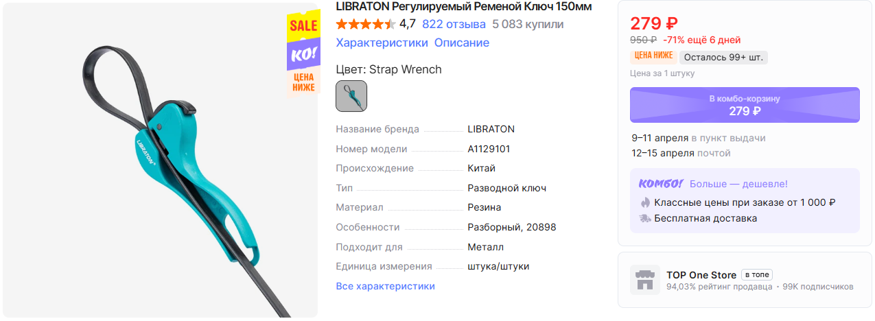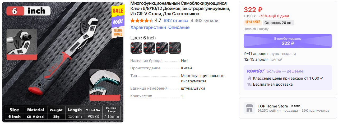 На AliExpress можно заказать ключи разных типов для различных работ по низким ценам, особенно если оформить через комбо-корзину. Минимальная сумма заказа 1000₽, но с быстрой бесплатной доставкой.