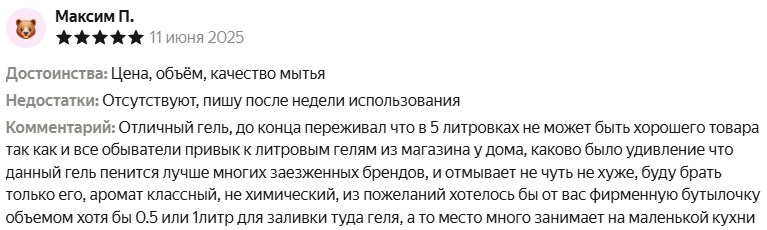 Гель густой, концентрированный, поэтому расход небольшой. Хорошо пенится и справляется с жиром и обычными кухонными загрязнениями. Подходит и для мытья детской посуды.