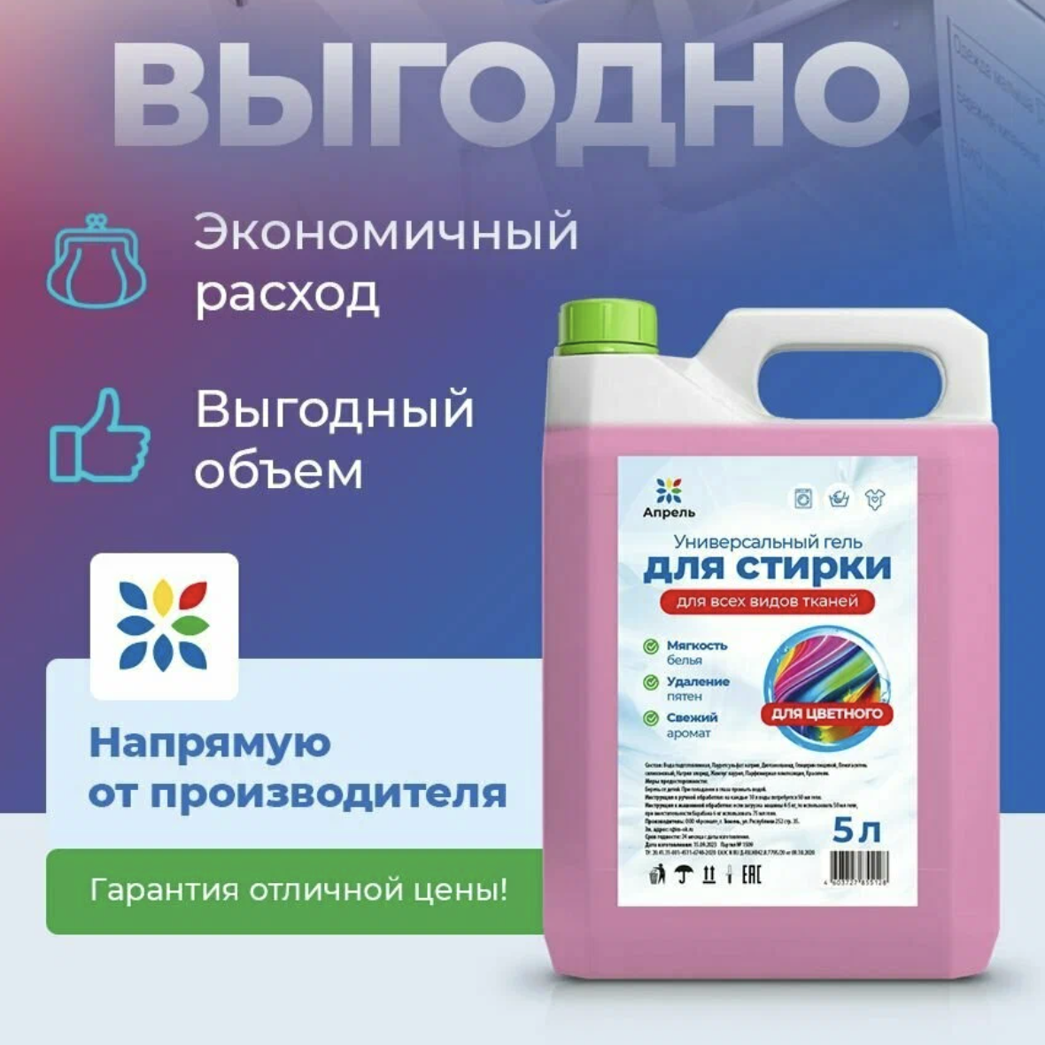 Не первый раз затариваюсь такими объёмами геля. Тут нашла прям дёшево, на вайлдберис он 1350 между прочим, разница почти в три раза. Он для цветного белья, гипоаллергенный, концентрат, хватает очень надолго. Ну и пахнет свежестью, что тоже приятно (если конечно любите чтобы вещи пахли после стирки)