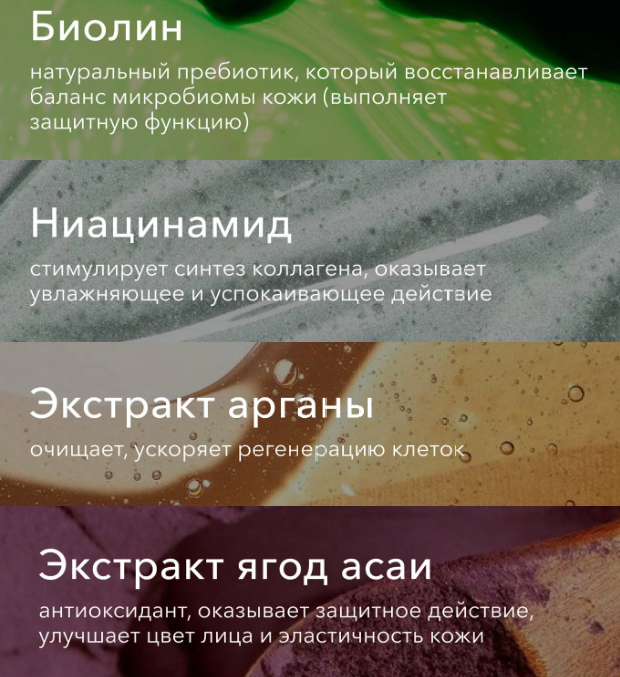Заинтересовал состав без агрессивных ПАВов, но с ниацинамидом, маслом авокадо и ягодными экстрактами. Текстура легкая, после умывания нет ощущения стянутости или жирной пленки. Использую как первый этап ухода перед сыворотками.