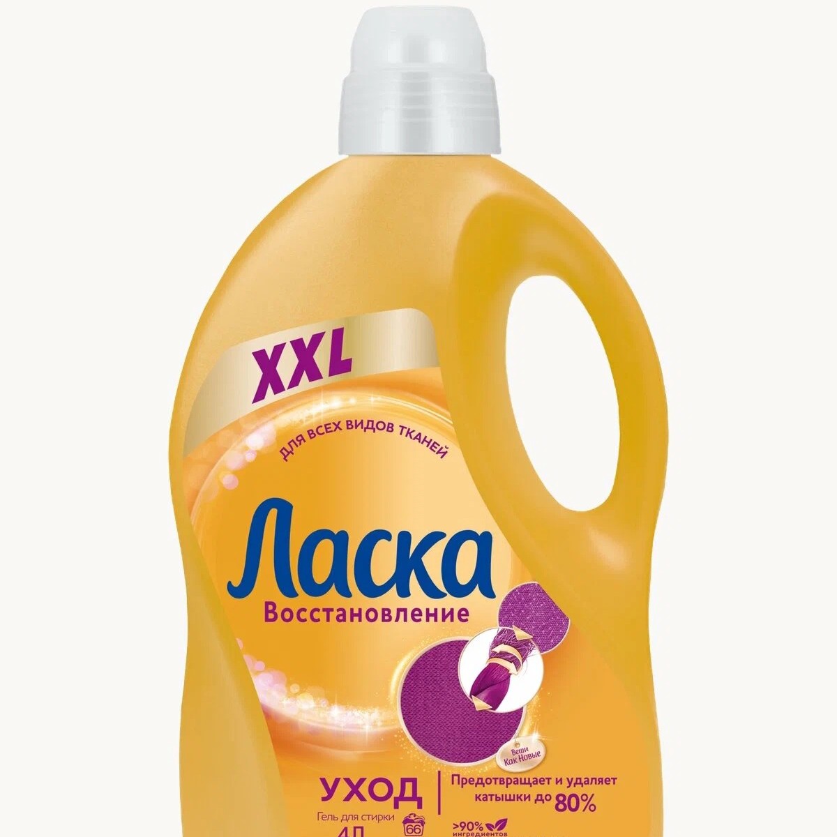 - Гель для стирки Ласка Восстановление Уход для всех видов ткани, 4л (66 стирок) за 589₽