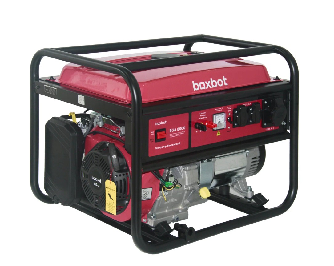 Надёжный источник энергии для дома, стройки или дачи. Номинальная мощность 8,3 кВт, максимальная 8,3 кВт (полная мощность 8300 ВА). Двигатель 459 см3, 18 л.с., 4-тактный, воздушное охлаждение, бензин АИ-92. Расход топлива 3,2 л/ч, бак 25 л - хватает до 8 часов работы. Запуск ручной. Три розетки: две 15А, одна силовая 32А. Есть клеммы для прямого подключения. Защита от перегрузок, вольтметр, датчик масла. Уровень шума 87 дБ. Вес 79,3 кг, размеры 700×675×660 мм.
