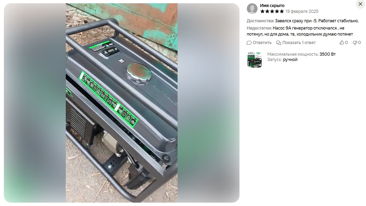 Мужики, генератор Electrolite 999 PRO за 16068₽ на Маркете нашёл. С промокодом ELECTRO20, а обычно от 19к просят.