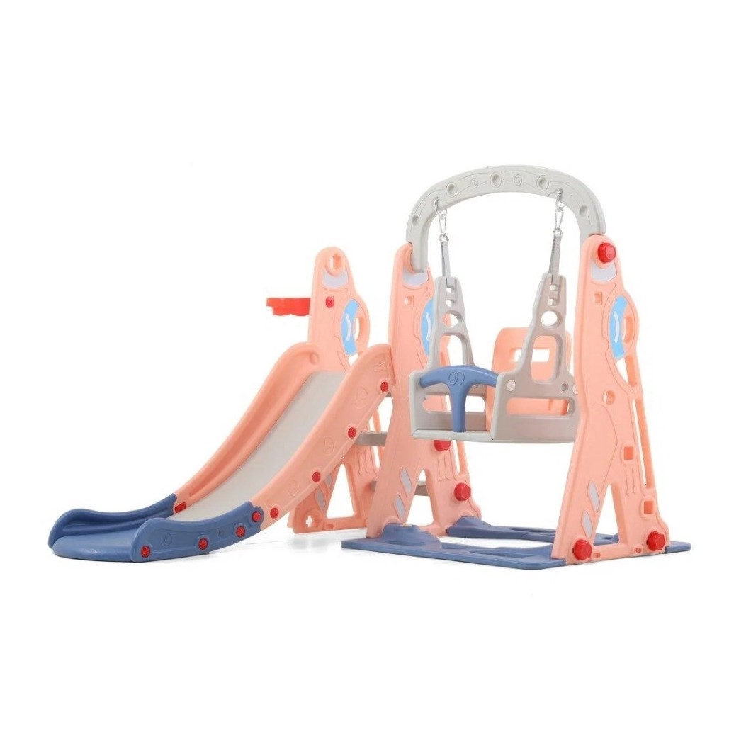 Подходит для детей от 2 до 6 лет, выдерживает до 30 кг. Размеры 143×135×110 см - не слишком громоздкий, в комнате поместится и на даче тоже. Качели с противоскользящим покрытием на перекладинах, горка прямая, безопасная . В комплекте, кстати, ещё баскетбольное кольцо идёт, так что три развлечения сразу .