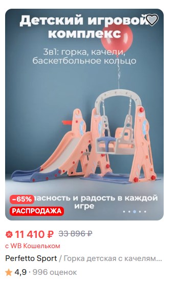 О, нашла классный игровой комплекс для малышей! Горка + качели Perfetto sport Космо на Яндекс Маркете сейчас за 5384₽, ещё есть Зайчонок за 5572₽. Обычно такие штуки от 11 тысяч стоят, так что разница огромная .