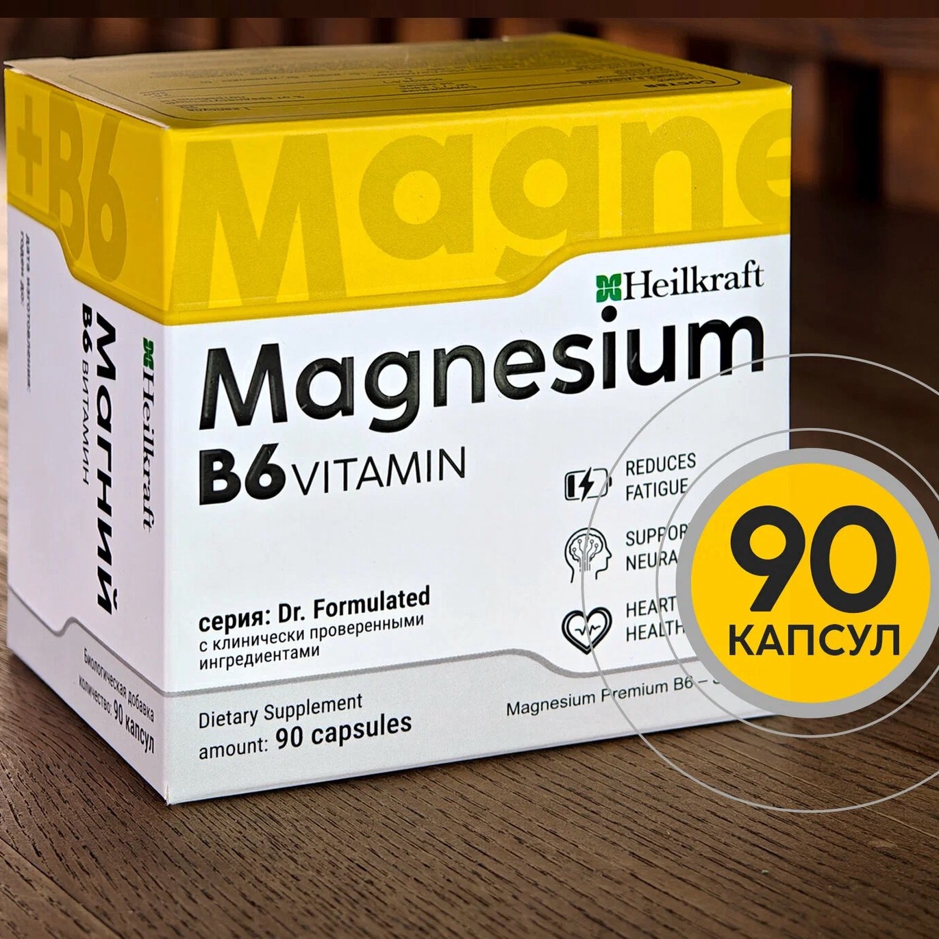 Подходит для курсового приёма. Биодоступная форма, не надо постоянно повышать дозу. В паре с витамином В6 усваивается лучше и поддерживает работу мозга и сердца. Магний участвует в передаче нервных импульсов и снижает возбудимость нервной системы. Актуально, когда всё бесит или не можешь уснуть из-за перегруза.