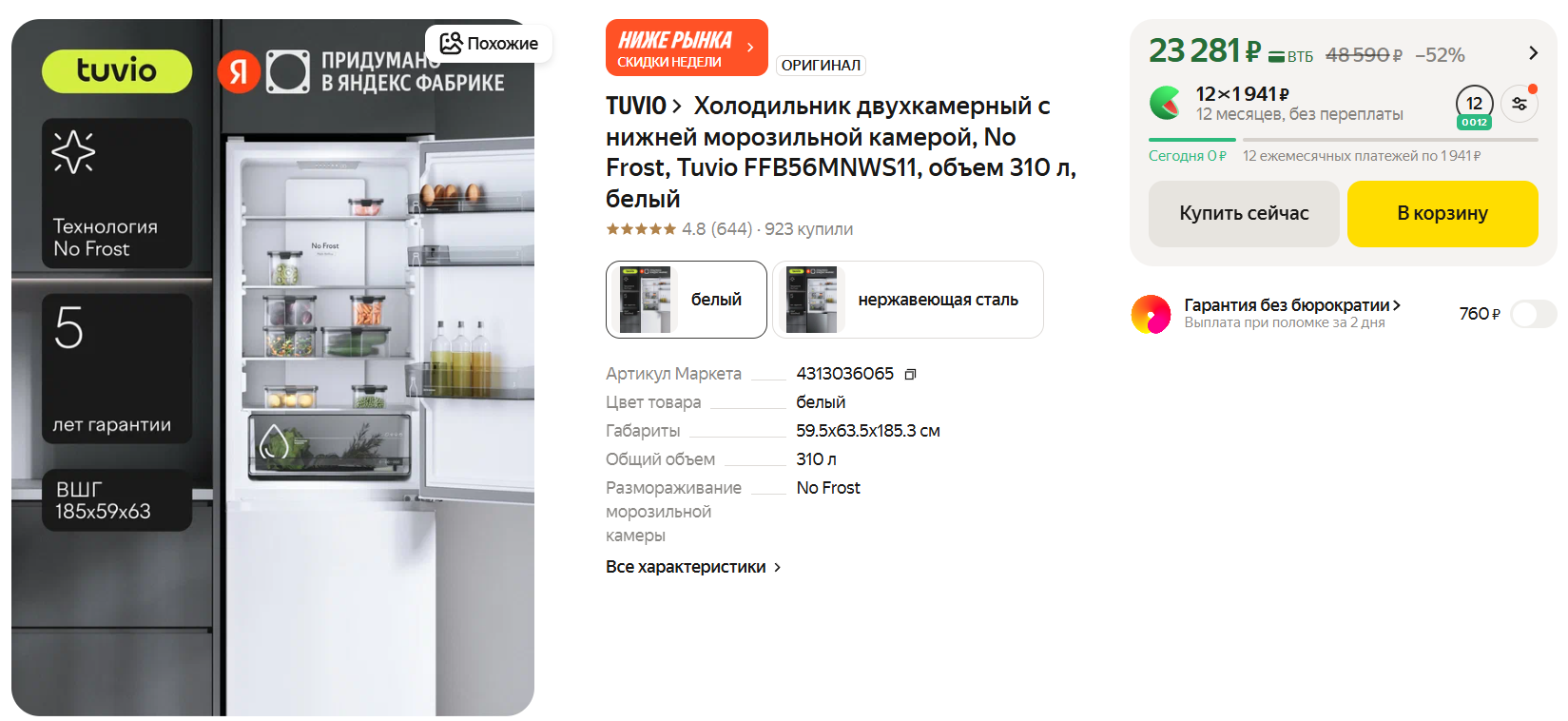 Хороший вариант, без лишних наворотов по доступной цене. Аккуратный белый корпус со скрытыми ручками, дверцы можно перевесить. Общий объём 310 литров (215 л в холодильнике, 95 л в морозилке).