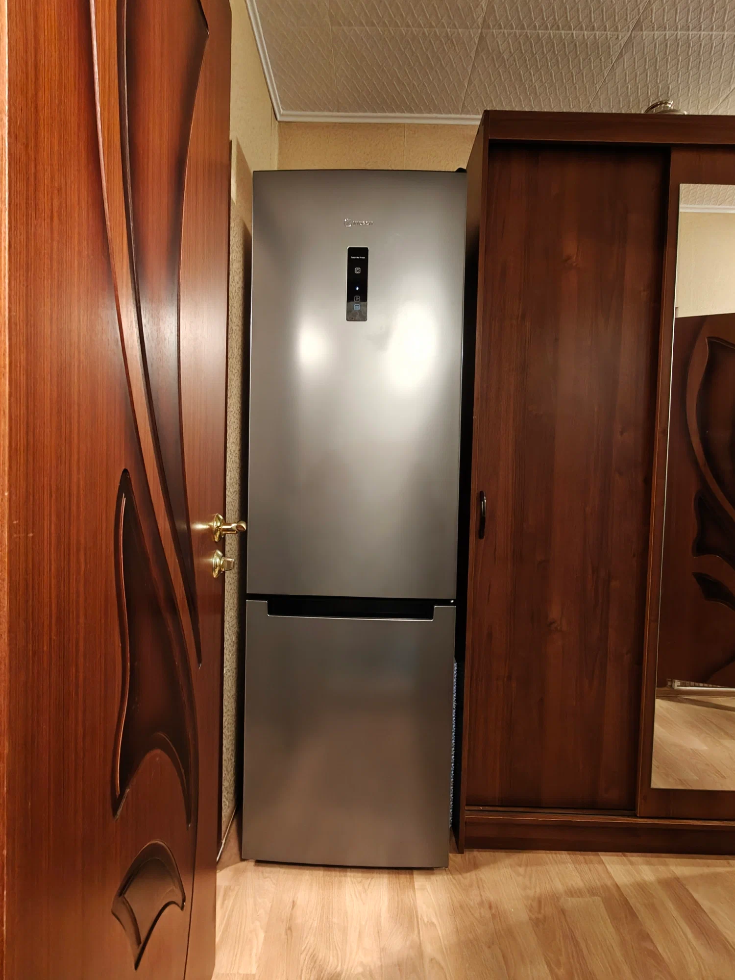 для такого холодоса цена кайф! Общий объём 325 литров: холодильная часть 247 л, морозилка 78 л. Замораживает до 4 кг в сутки, без света держит холод 14 часов. Полки стеклянные, усиленные. Светодиодная подсветка, есть дисплей, перевешиваемые двери. Класс энергопотребления А, шумит в пределах 40 дБ. Для семьи нормальный вариант.
