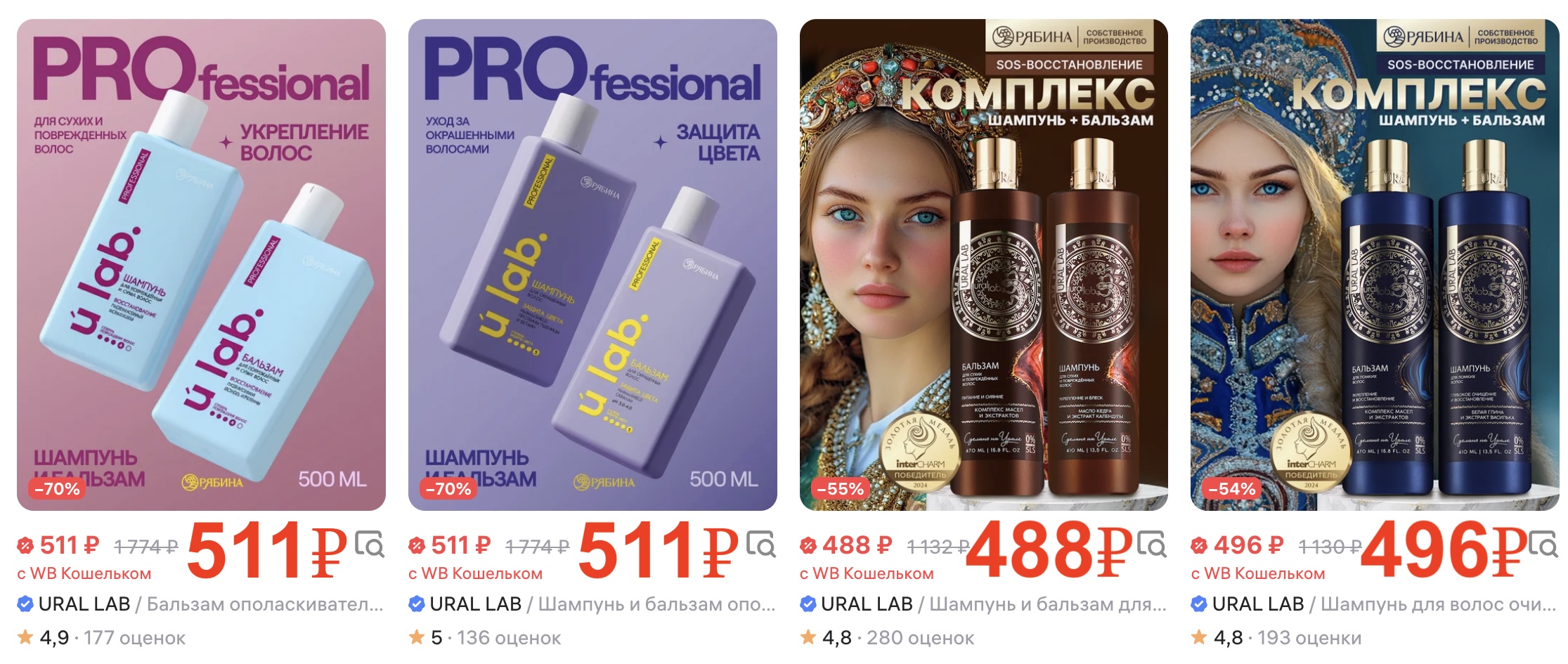 Сейчас на Wildberries можно заказать наборы шампуня и бальзама по хорошей цене, если оплачивать WB-кошельком. Без него цена чуть больше.