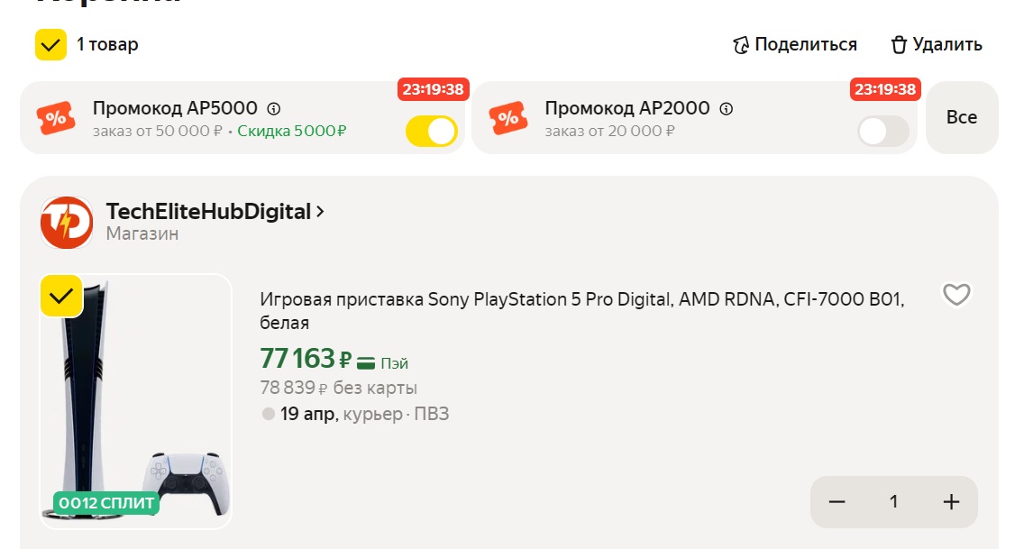 PlayStation 5 Pro Digital, CFI-7000 B01 получается не вау, но и неплохо - 77163₽ у меня