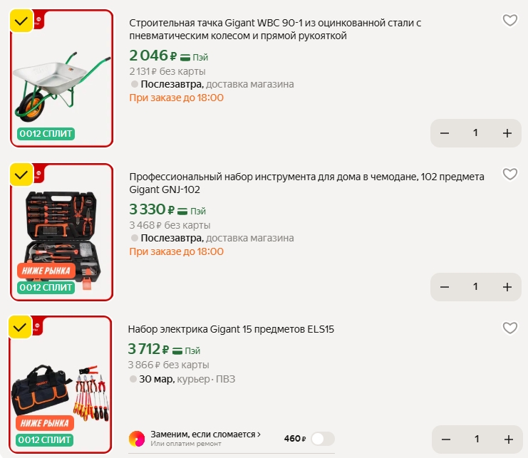 Цены получаются заметно ниже, даже чем в самом магазине ВсеИнструменты вне ЯМ.