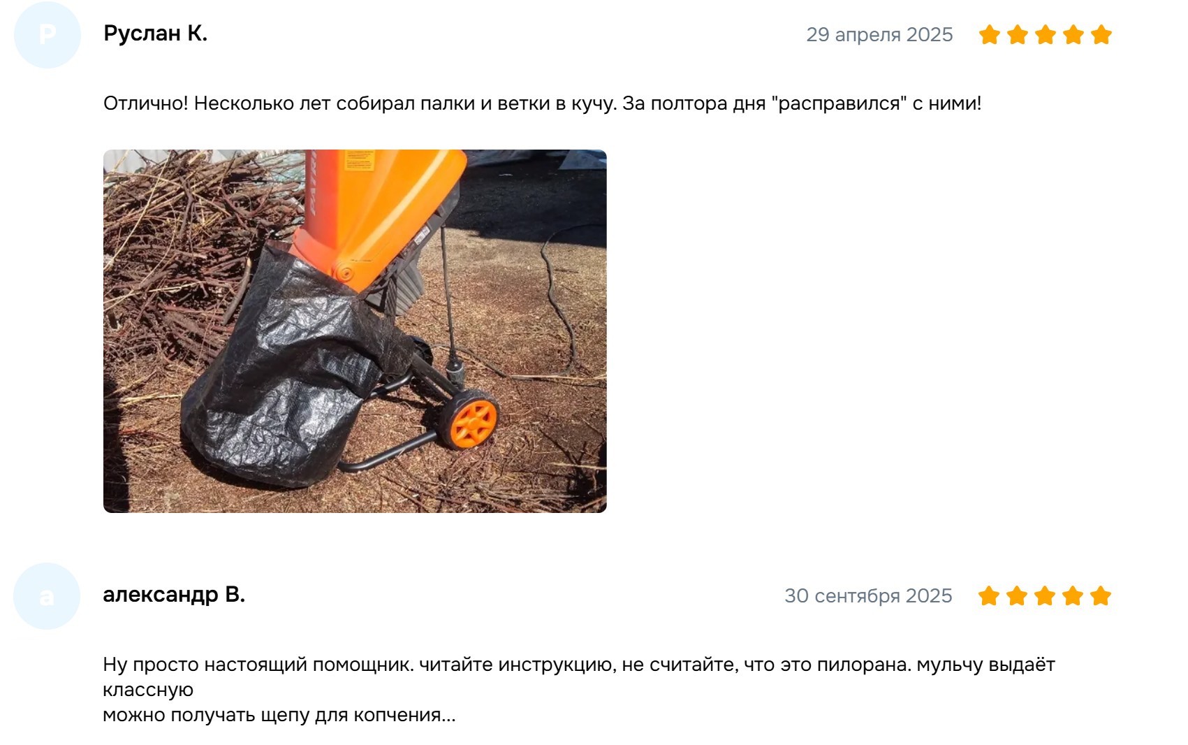 Система измельчения - режущие ножи, производительность составляет 125 кг/ч, мусоросборник отсутствует, но в комплекте есть мешок объёмом 50 л.
