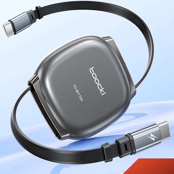 Удобный выдвижной кабель длиной 1 метр с разъёмами Type-C на обоих концах. При необходимости размотал нужной длинны и подключил.