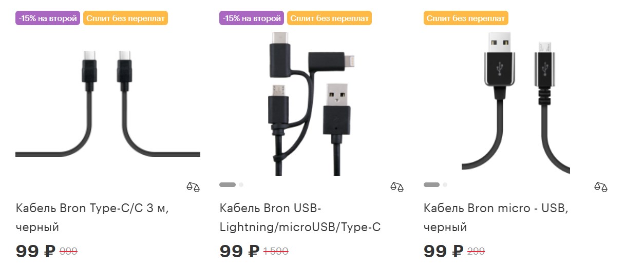 Bron USB-Lightning/microUSB/Type-C - 99₽ (универсальный вариант)