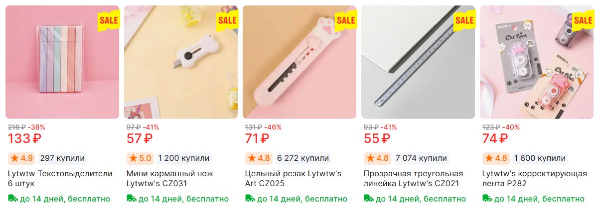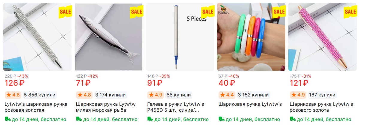 За такие цены можно взять несколько штук на пробу или на подарки. Ручка-браслет за 40₽ - прикол, но может реально пригодиться. Пенал за 109₽ тоже симпатичный, если ребёнку или для себя милоты хочется.
