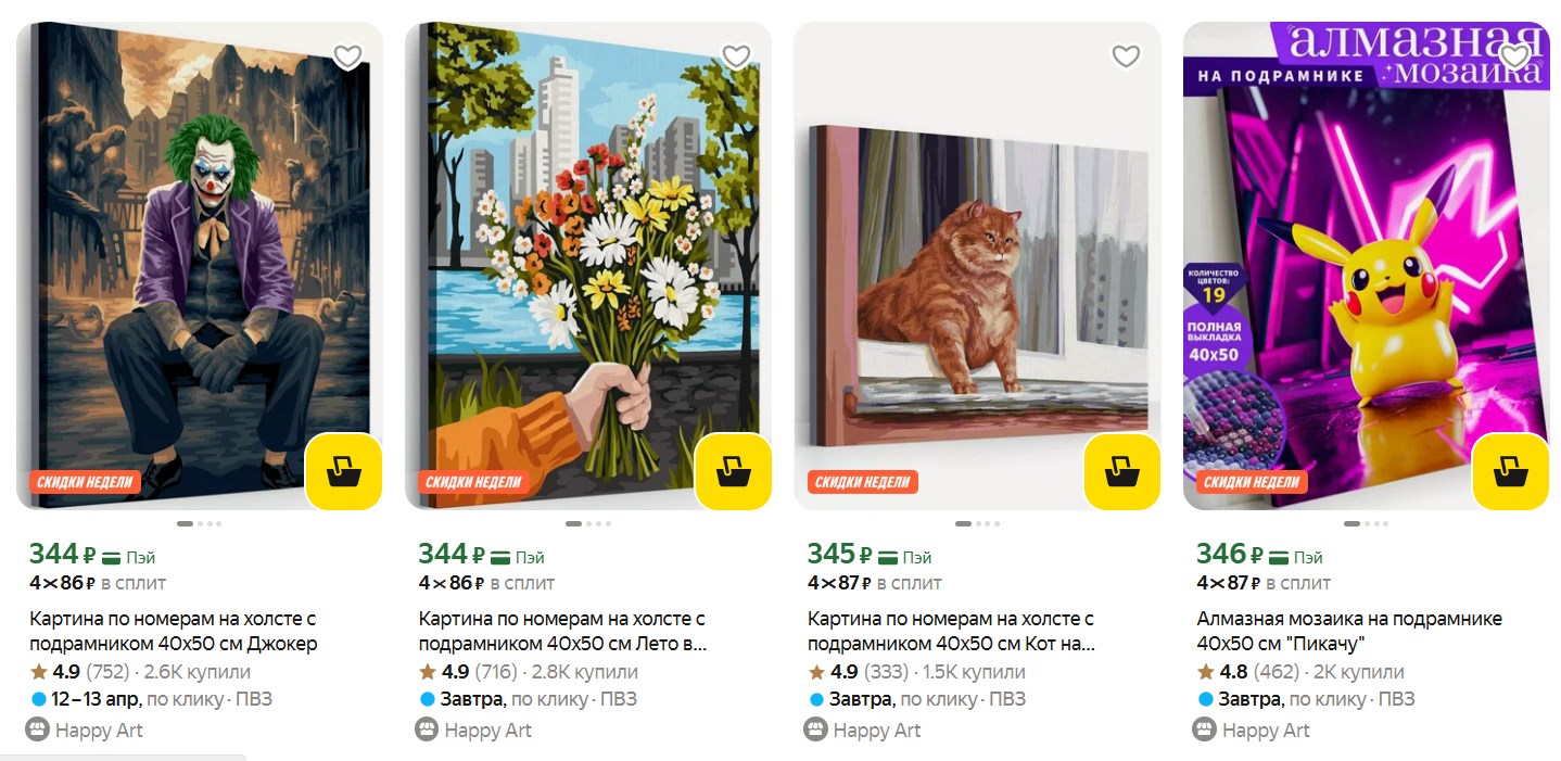 Ребята, для тех, кто любит рисовать по номерам или ищет необычный подарок - посмотрите у продавца Happy Art. У них огромный выбор картин, цены в районе 300₽. Можно взять на вечер, а можно коллекцию собрать.