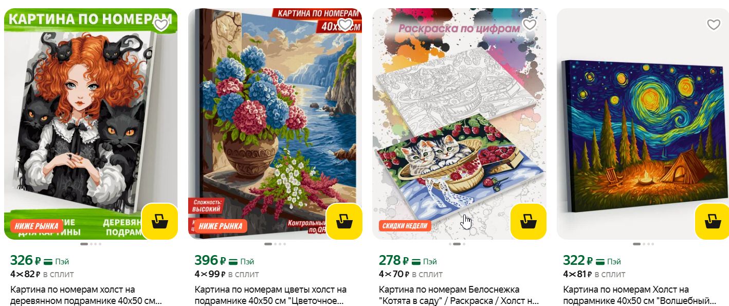 Это готовые набор (холст/картон, краски, кисти). Цены ниже, чем в художественных магазинах. Некоторые промокоды активируются после подписки на магазин.
