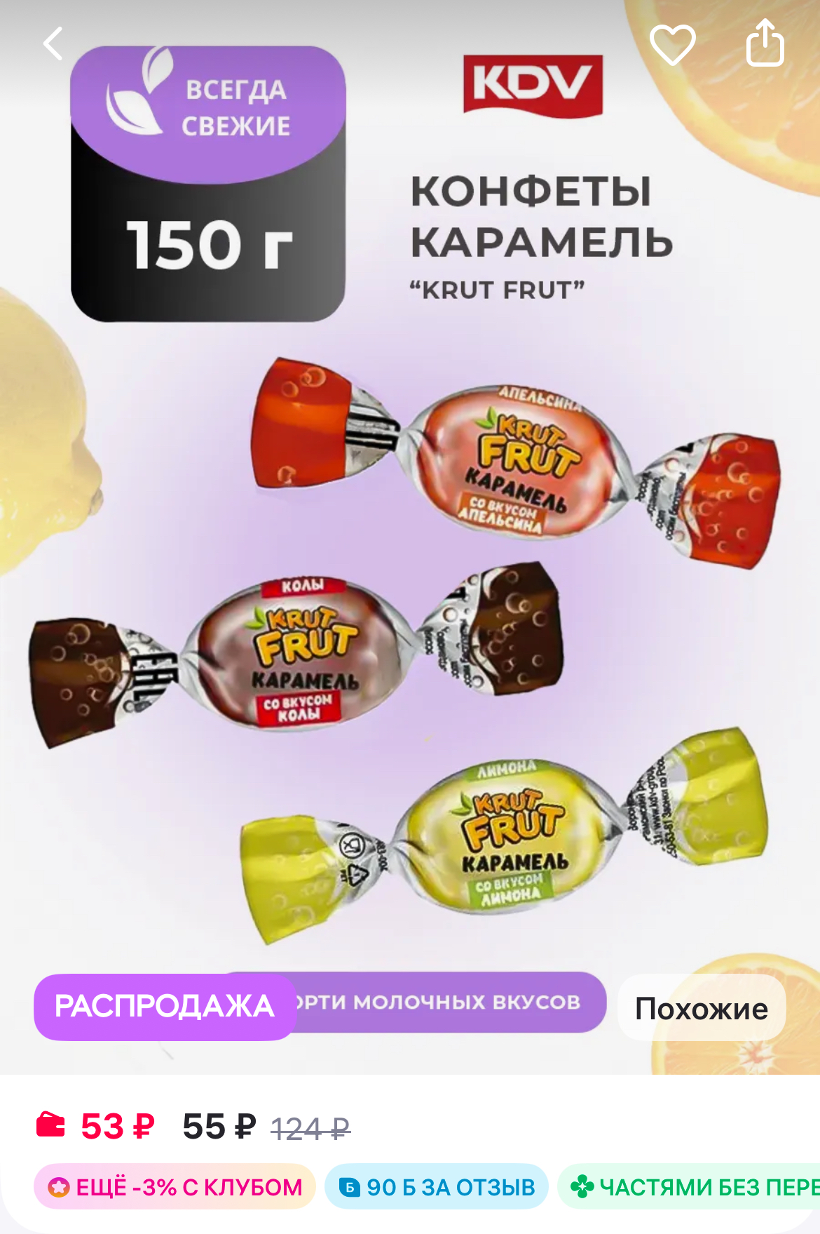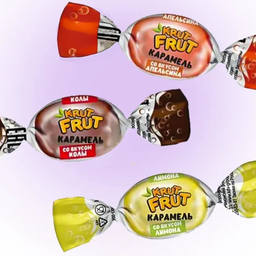 Конфеты ассорти карамель с шипучей начинкой кола, апельсин, лимон.