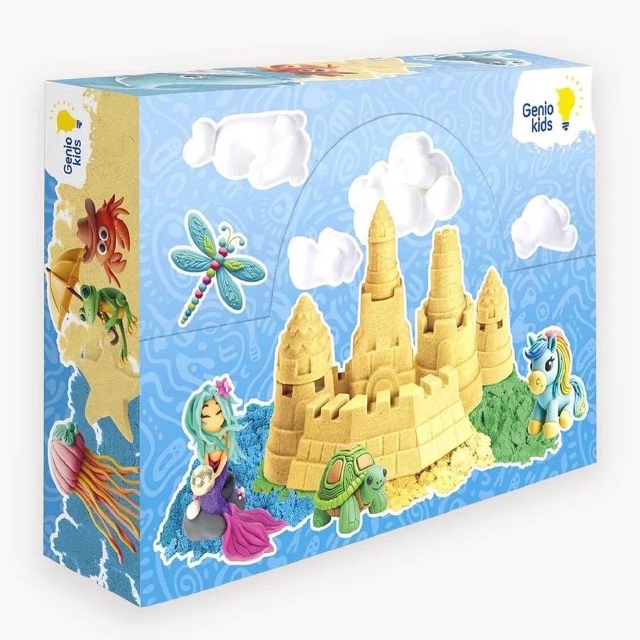 В наборе 3 кг песка, хватит чтобы строить башни, куличи и играть компанией. Коробка является песочницей т контейнером для хранения.