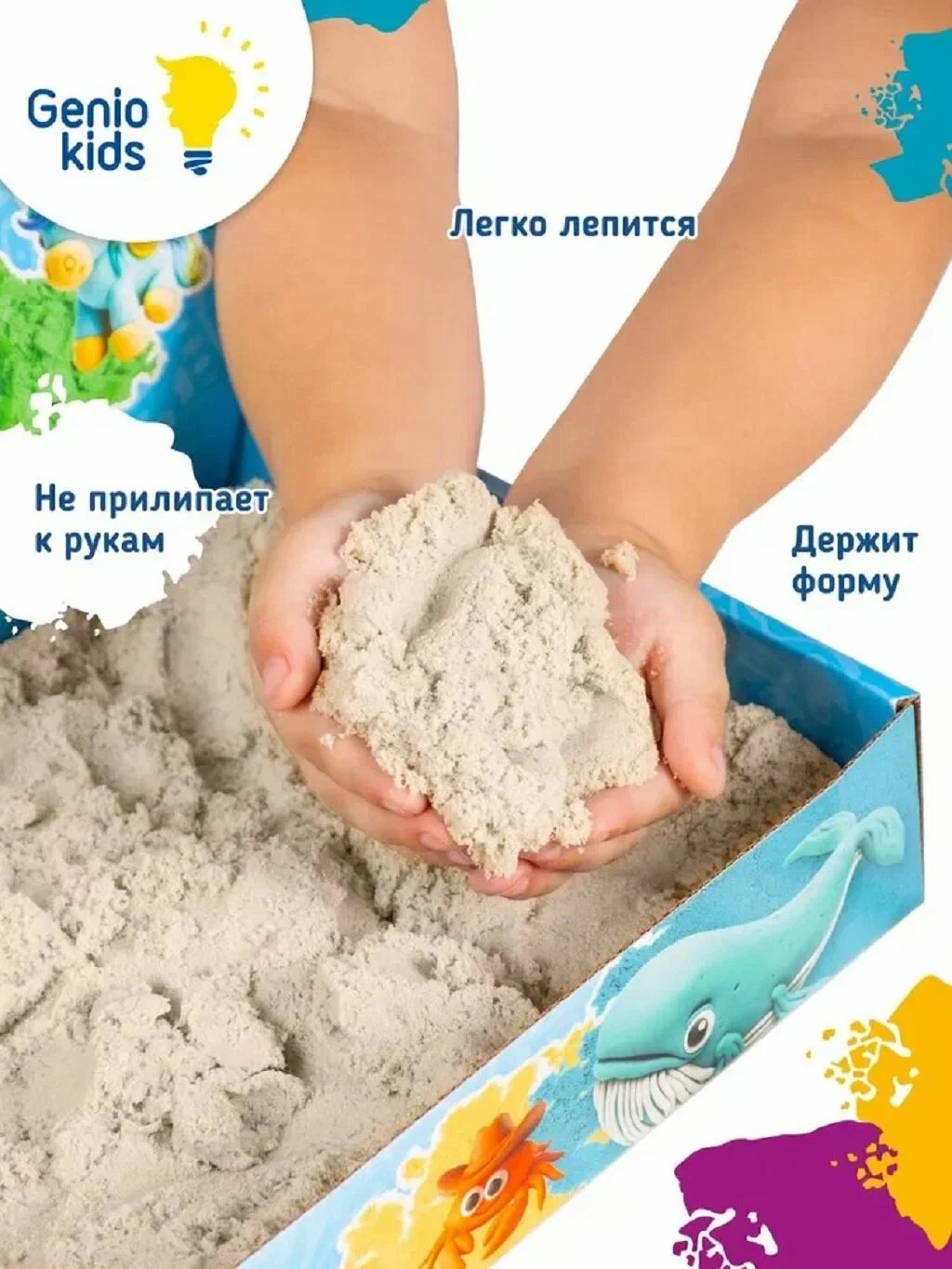 Отличный подарок детям. Песок лепится, как мокрый песок, но при этом остаётся рассыпчатым, не липнет к рукам и не пачкает всё вокруг.