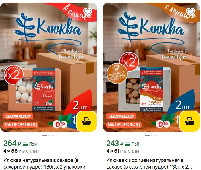 Можно и обычную взять: Клюква натуральная в сахаре (в сахарной пудре) 130 г. х 2 упаковки за 251₽