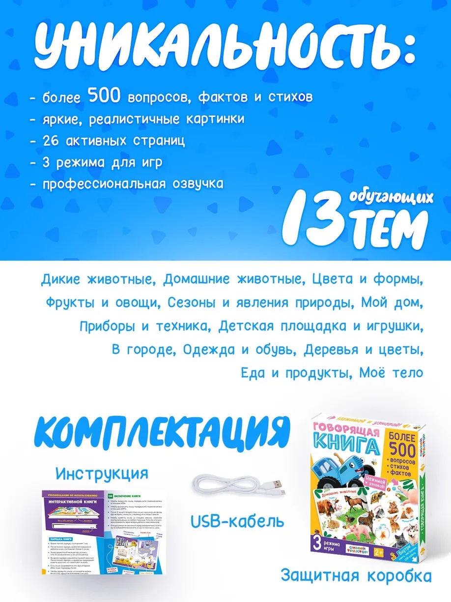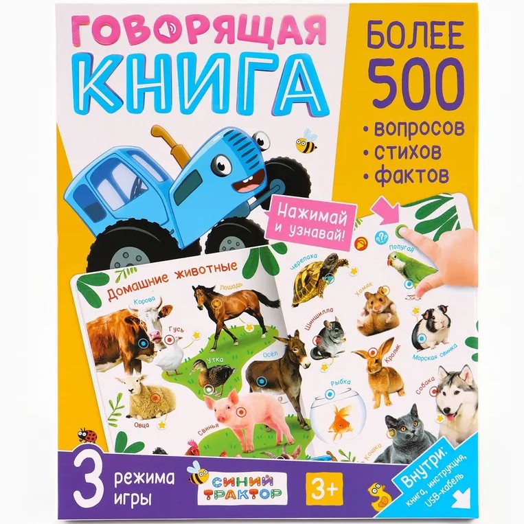 Покупали эту книгу дочке на 1,5 годика и она очень понравилась ценительнице Синего Трактора. Герой называет предмет, животное или воспроизводит звук. Страницы плотные, перелистывать удобно даже маленькими ручками. Картинки яркие, но не кричащие, герои узнаваемые и добрые.