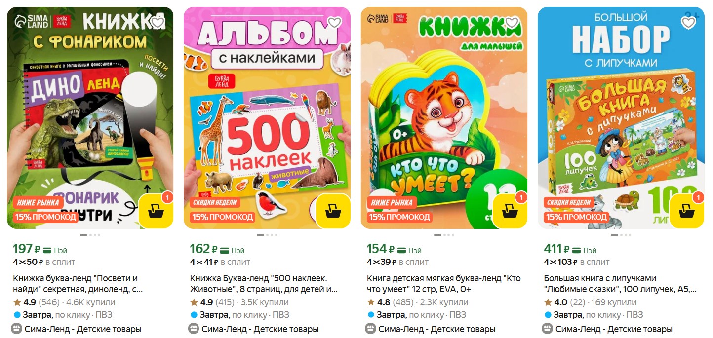 Ребята, у кого есть маленькие дети - посмотрите книги «Буква-Ленд» на Яндекс Маркете. Сейчас можно взять их с хорошей скидкой по промокоду. Там и липучки, и окошки, и фонарик, и многоразовые наклейки - в общем, всё, что дети так любят.