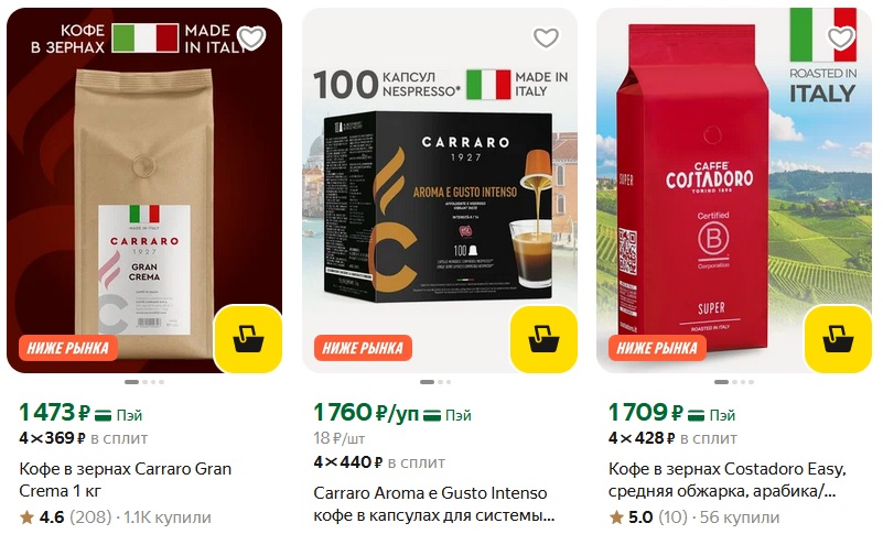 Сниженные цены на кофе Italco, Costadoro, Carraro с любимой категорией недели, в других магазинах цены выше на 10-15%. В каталоге есть кофе разных видов и степени обжарки.