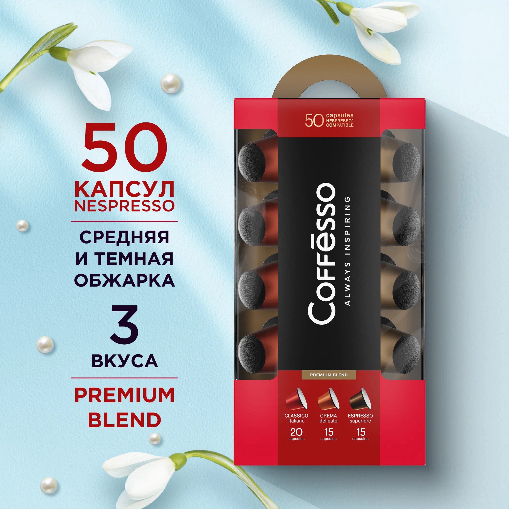 Капсулы типа Nespresso Original, в наборы разные вкусы Classico Italiano (средняя обжарка, классика), Espresso Superiore (интенсивный, для крепкого эспрессо), Crema Delicato (лёгкий, с нежной пенкой).