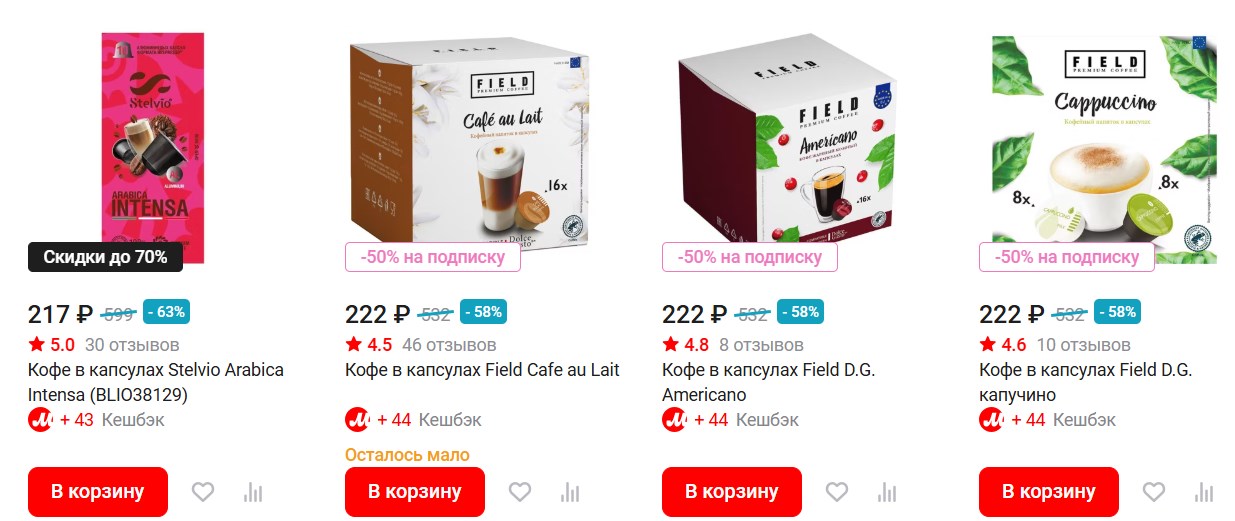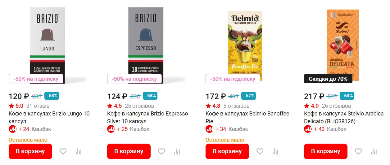 Друзья, для тех, у кого дома капсульная кофеварка - посмотрите, что сейчас есть в М.Видео. Цены от 120 рублей за упаковку, а если есть бонусы на карте, можно взять ещё дешевле. Ассортимент и наличие зависят от города, так что лучше проверять по ссылке.