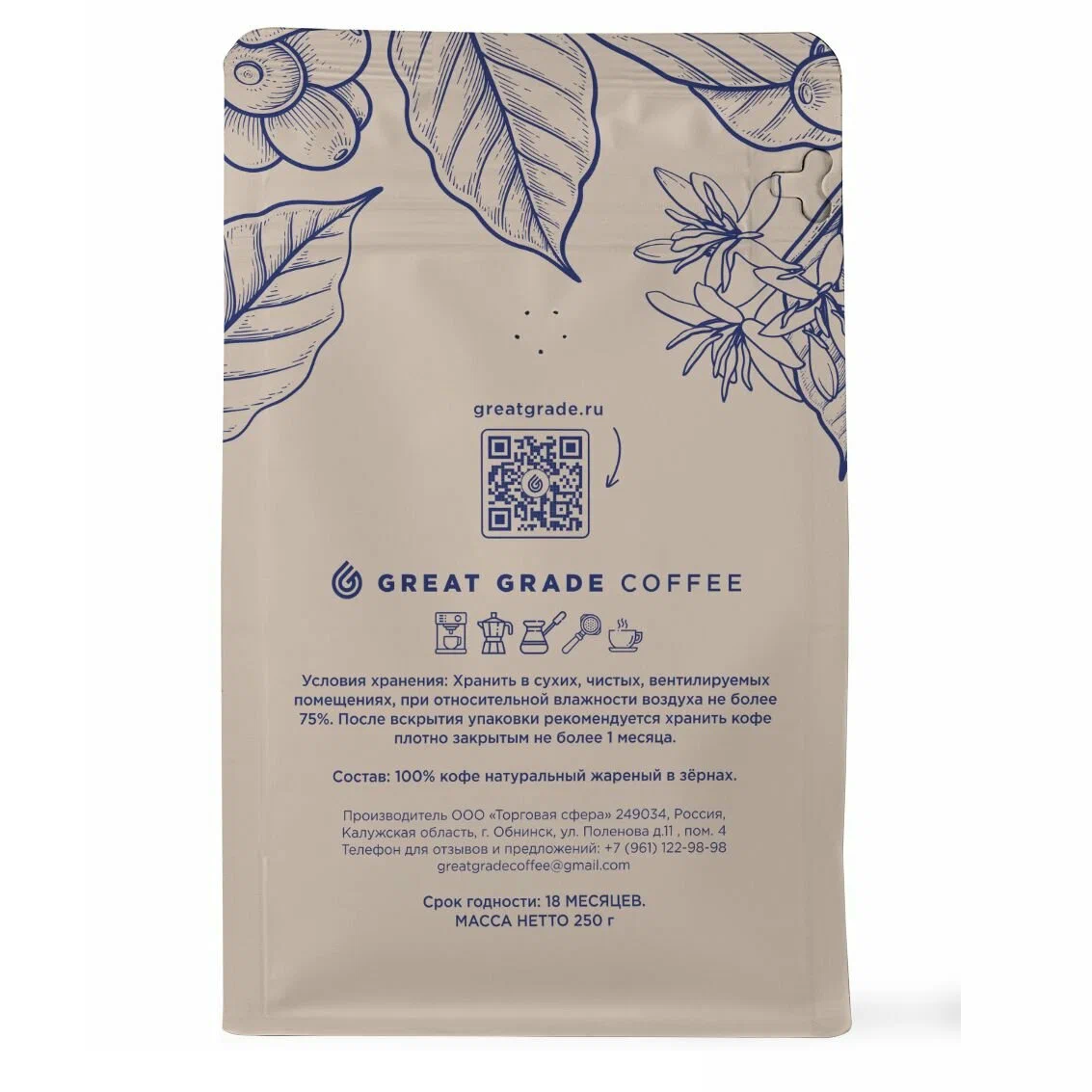 Арабика и робуста 250 г за 542₽. Кофе получается с привкусом какао, грецкого ореха и апельсина. С учётом баллов выходит 342₽