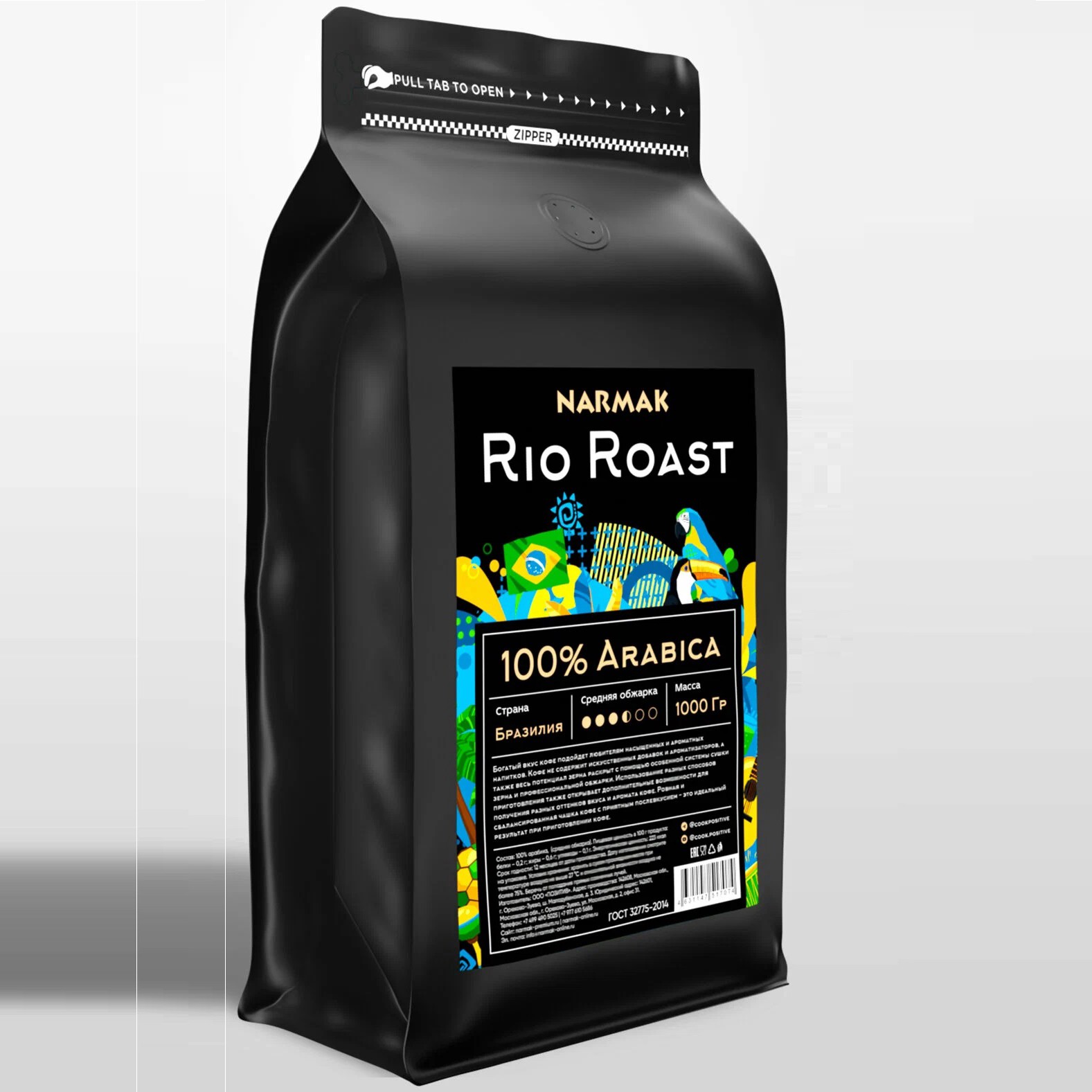 Свежеобжаренный кофе из 100% бразильской арабики. Средняя степень обжарки обеспечивает сбалансированный вкус, яркий аромат и пышную пенку.