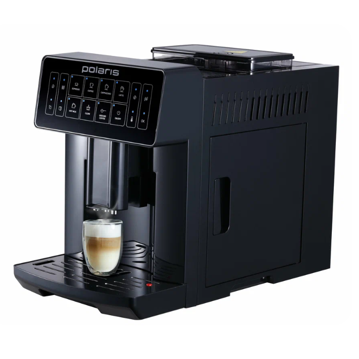 5 автоматических программ: эспрессо, кофе, капучино, латте, горячее молоко. Сенсорное управление, можно настраивать крепость, температуру и количество пены. Есть подогрев чашек, автоотключение, автоматическая очистка.