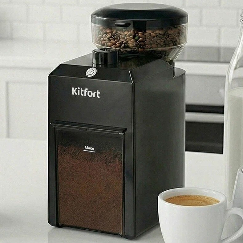 Она именно с плоскими жерновами из нержавейки. Она мелет равномерно. Не мукой, не кусками, а нормально, ровно. Можно настроить помол: от мелкого, для рожковой кофеварки, до грубого - для френч-пресса. И кофе при этом не перегревается, как в роторных. Контейнер для зерен на 85 г, для молотого на 100 г. Всё съёмное, с крышками. Верхний жернов тоже снимается - чистить удобно. Есть защита: не включится, если контейнер для зерен стоит криво или вообще не стоит.