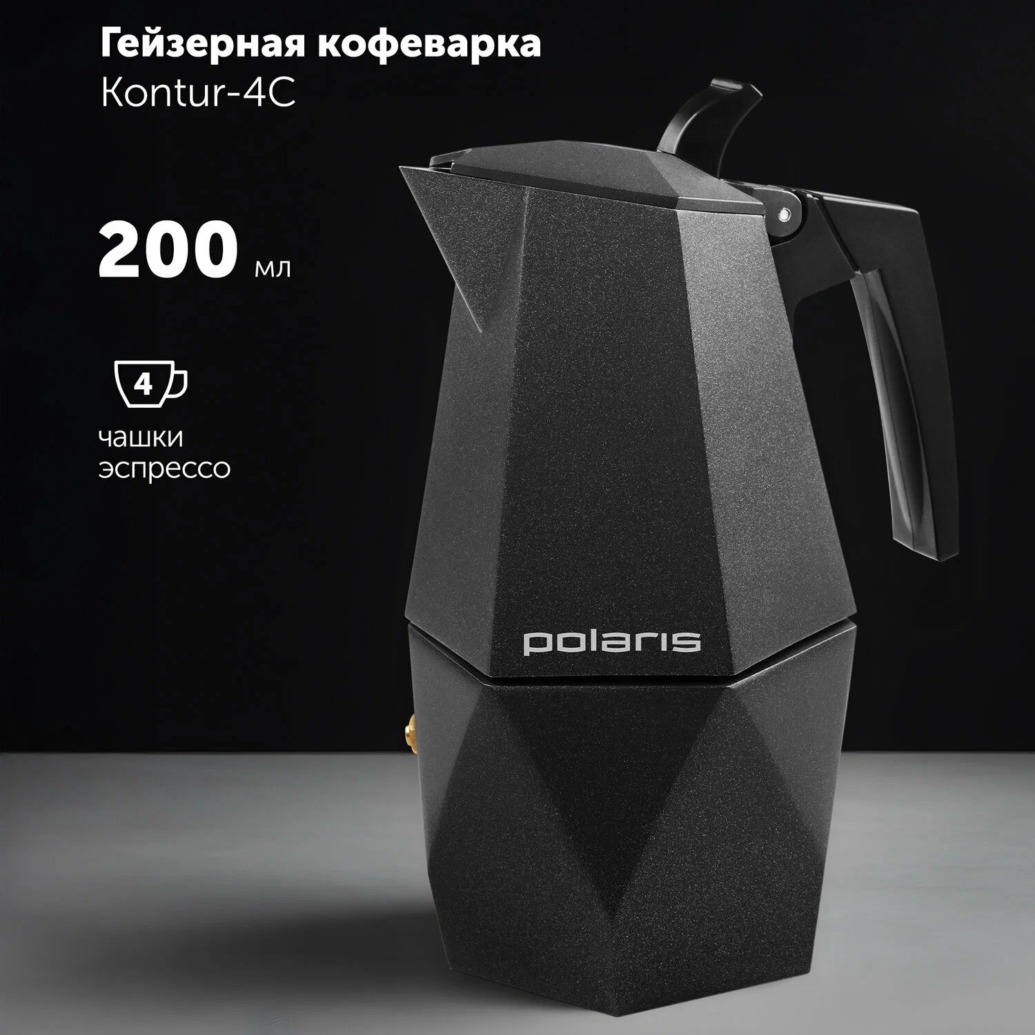 Классическая гейзерная кофеварка из алюминия, предназначенная для приготовления на плите, не подходит для индукционных плит. Объём 0.2 л, бакелитовая ручка с покрытием Soft Touch.