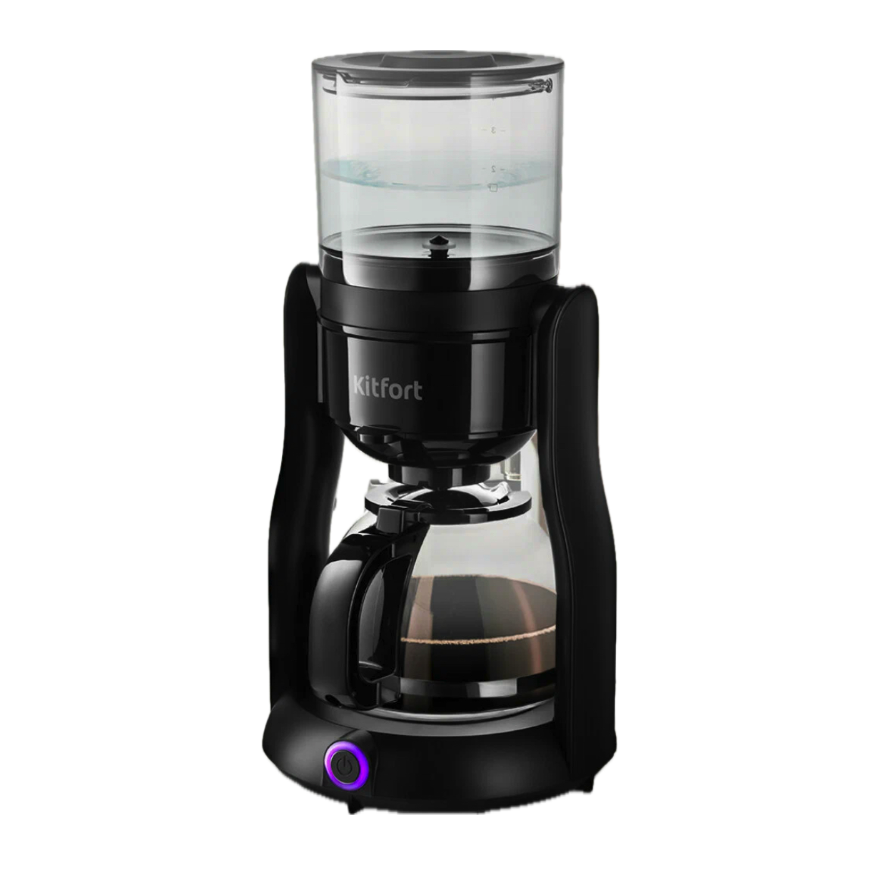 Объём маленький, но норм: бачок на 0.5 л, а готовит в стеклянный кувшинчик на 480 мл - пару чашек кофе как раз