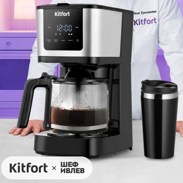Смотри, нашла кофеварку Kitfort за 3079 по промокоду KITFORT25. Там фишка главная - режим «Холодный кофе». Засыпал молотый, засыпал лёд, нажал кнопку и через пару минут готов нормальный холодный кофе, без нагрева.