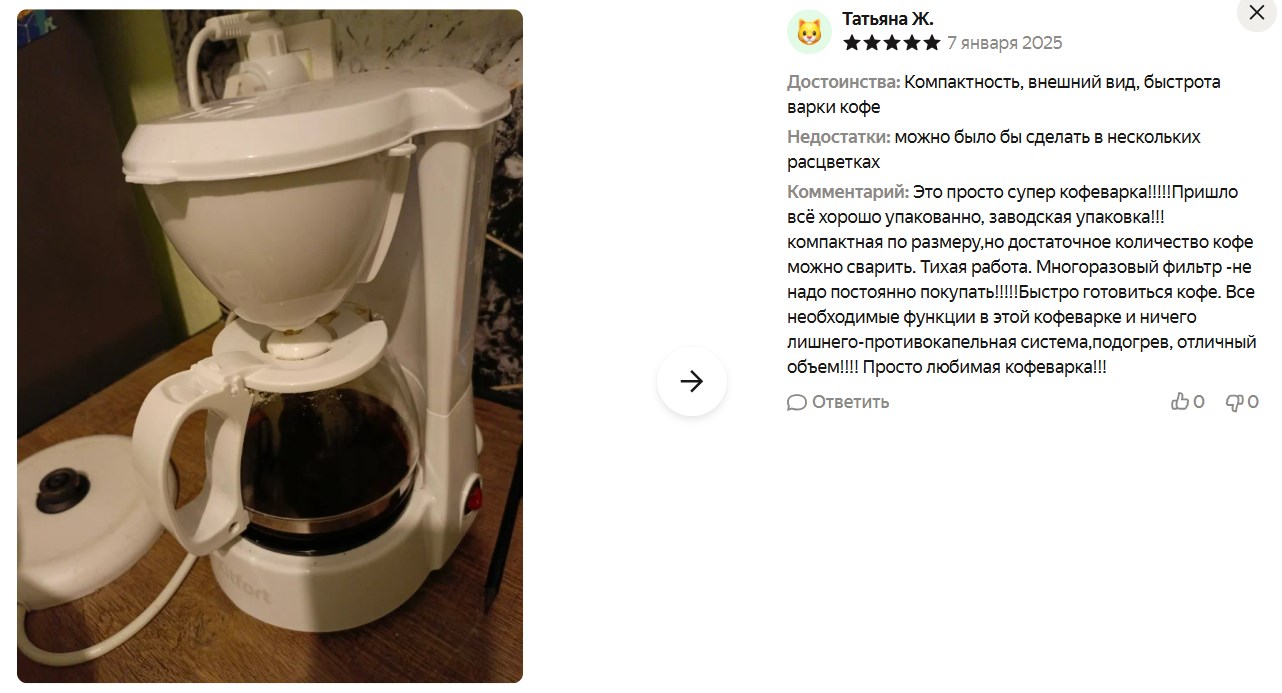 О, отличная цена на кофеварку! 1095₽ с промокодом KITFORT25 на Яндекс Маркете - за такие деньги это просто находка .