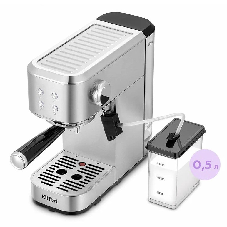 Давление помпы 15 бар, металлические фильтры не требующие замены, отдельная ёмкость для молока.