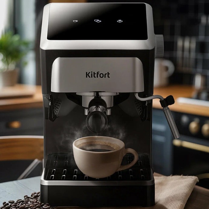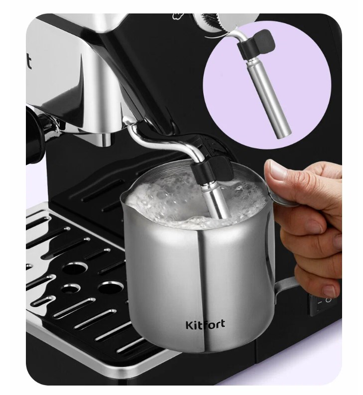 Привет. На Маркете кофеварка Kitfort КТ-7647 за 5 635₽ с промокодом KITFORT25 - обычно от 7 тысяч. Мощность 1400 Вт, давление 15 бар (то, что нужно для настоящего эспрессо). Готовит эспрессо, капучино и латте - есть стимер и насадка панарелло для молочной пены, плюс отдельный регулятор подачи пара.