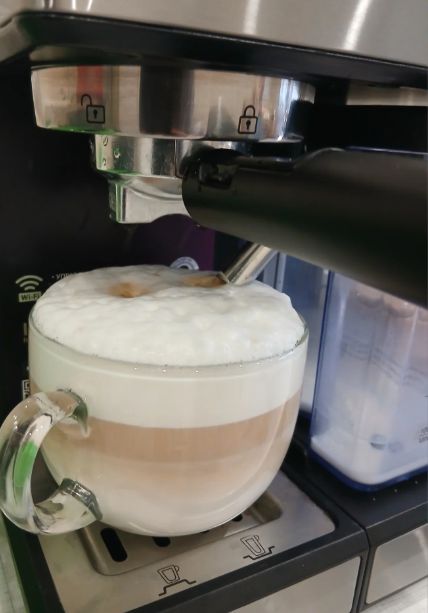 Аппарат покупался для приготовления капучино и латте. Не кофеман, не люблю эспрессо, следовательно не пью. Но ради интереса было приготовлено и эспрессо, на мой взгляд аппарат справился с поставленной задачей, была красивая кофейная пенка, которая обычно не бывает у меня при приготовлении кофе в турке. Теперь про капучино и латте. Фото латте прикреплено ниже. Одно фото сделано в октябре, второе фото сделано в ноябре, аппарат покупался в сентябре, в использовании два месяца. Меня полностью все устраивает по цене/качеству/функционалу