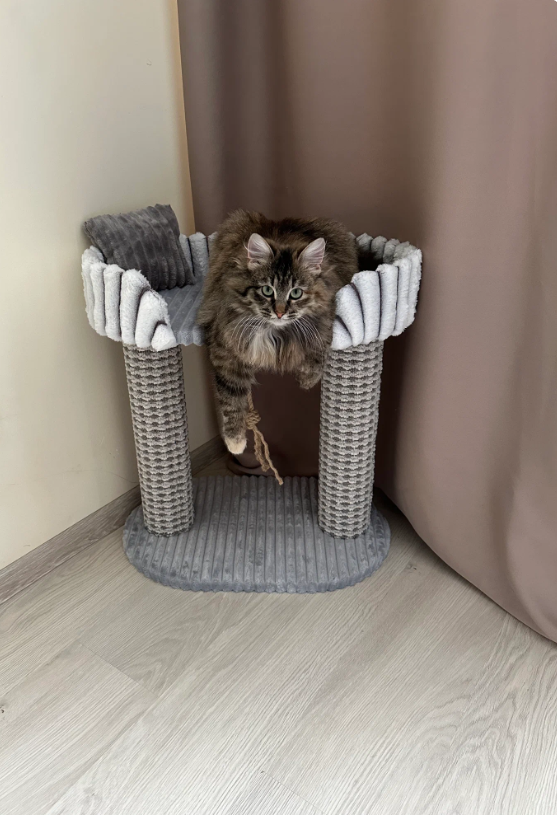 Очень красивая когтеточка с лежаночкой😍 я просто в восторге, котеечке тоже понравилось, особенно веревочка🤗 В комплекте милая подушечка)) сама когтеточка классно вписывается в интерьер.