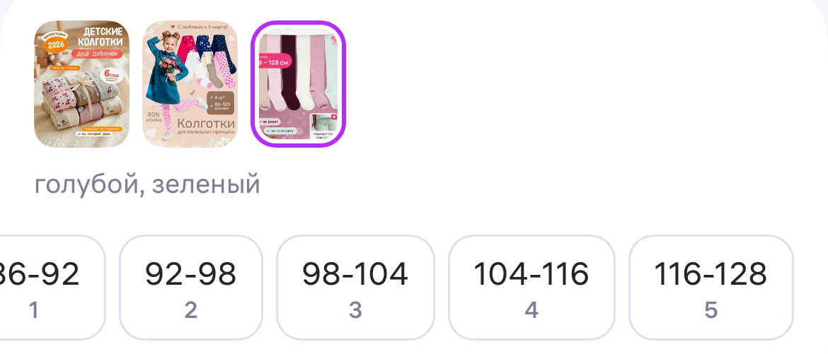 Хорошие хлопковые колготки для девочек. В наборе 6 штук разных цветов, выходит за 91₽ штука.