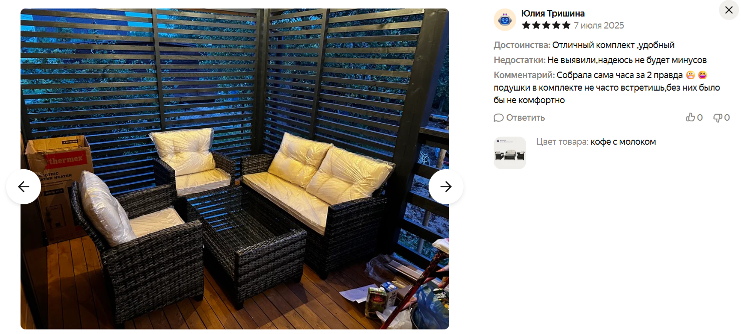 Искала родителям на дачу уличную мебкль, пока не начался сезон и цены не улетели в космос ) и нашла симпатичный набор в цвете "кофе с молоком", который подойдет под любой фасад или зону отдыха.