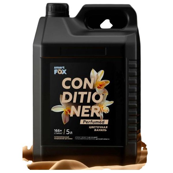 Для тех, кто любит, чтобы бельё вкусно пахло. Кондиционер SMART FOX «Цветочная ваниль», 5 литров за 429₽. Цена отличная за такую канистру.