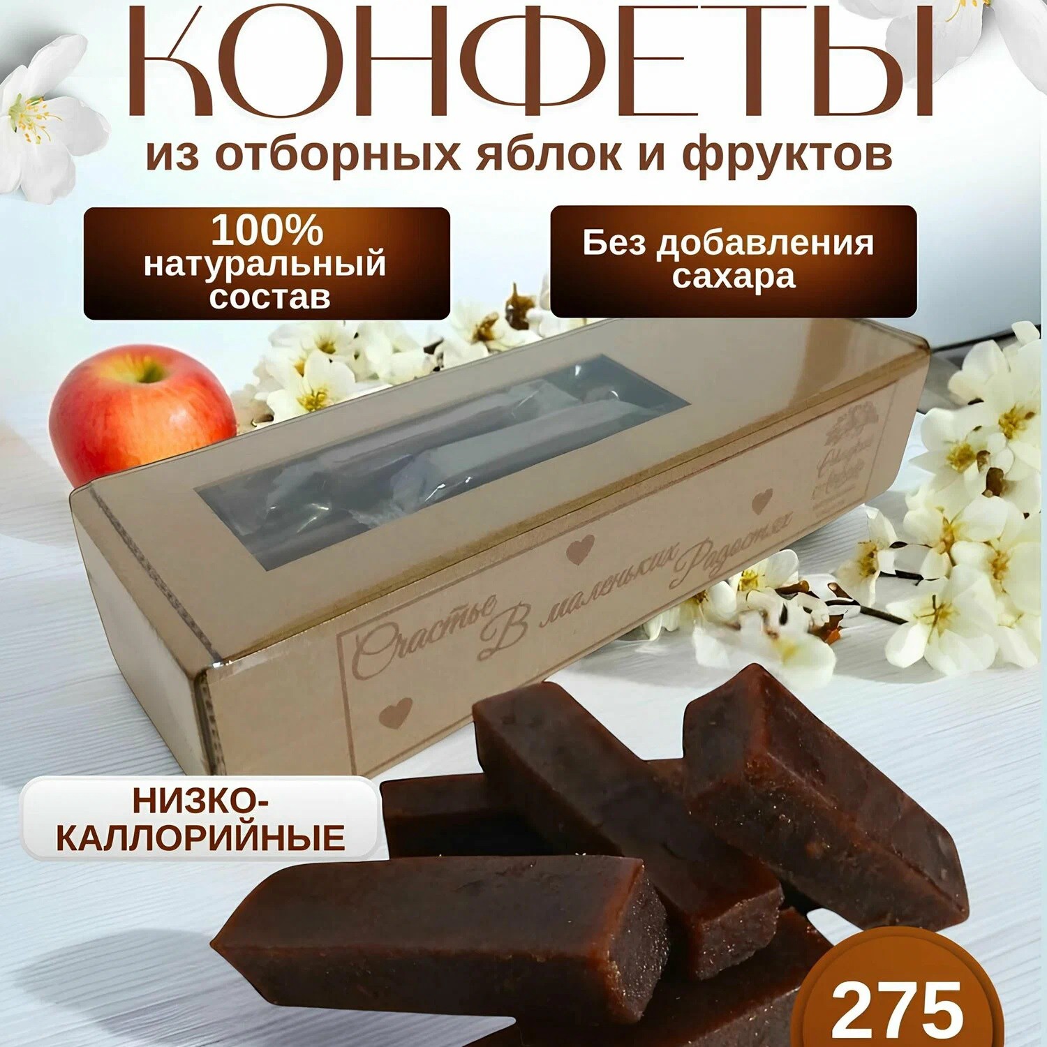 Конфеты без сахара яблочные с черносливом, 275 г, "Сладкий апрель" с баллами за отзыв
