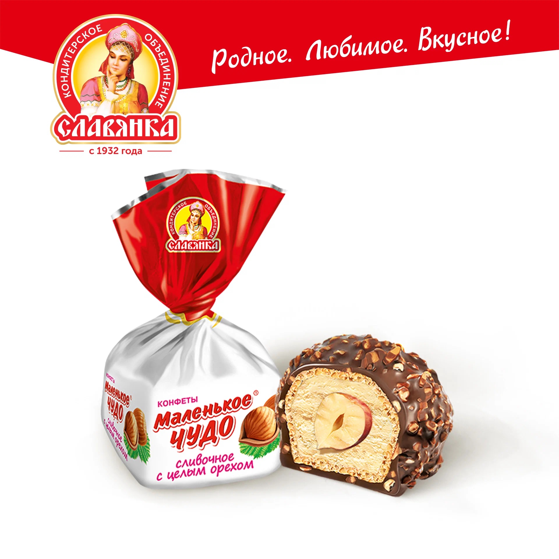 Основа конфеты хрустящая вафля, внутри мягкая кремовая начинка и цельный орех, покрыта молочным шоколадом и посыпана арахисом. Пишу и слюнки текут.