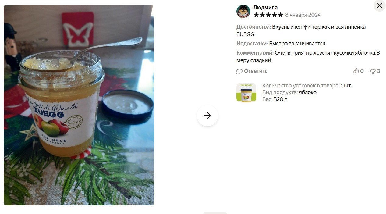 Нежный, с кусочками яблочной мякоти и лёгкой кислинкой. Состав чистый: яблоки, сахар, пектин, лимонный сок.