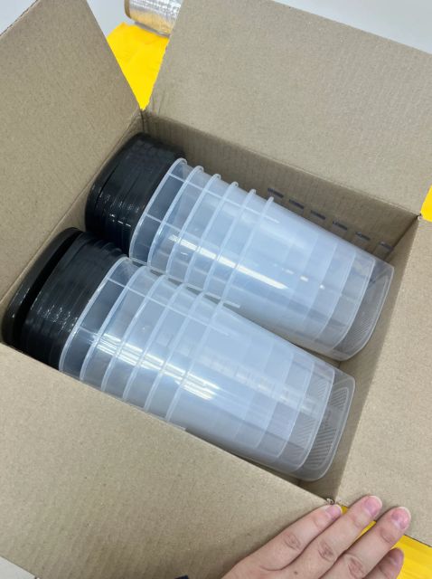 Прозрачные, видно где что. Мерная шкала есть, крышки плотные - ничего не просыпается. Можно друг на друга ставить, место экономят.